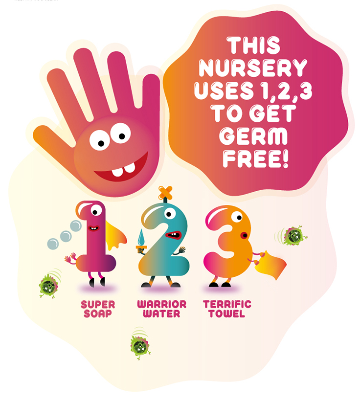 - Receive an additional email featuring a bespoke printable A3 wall ‘badge’ to show you’re an official 123 Germ Free Nursery.