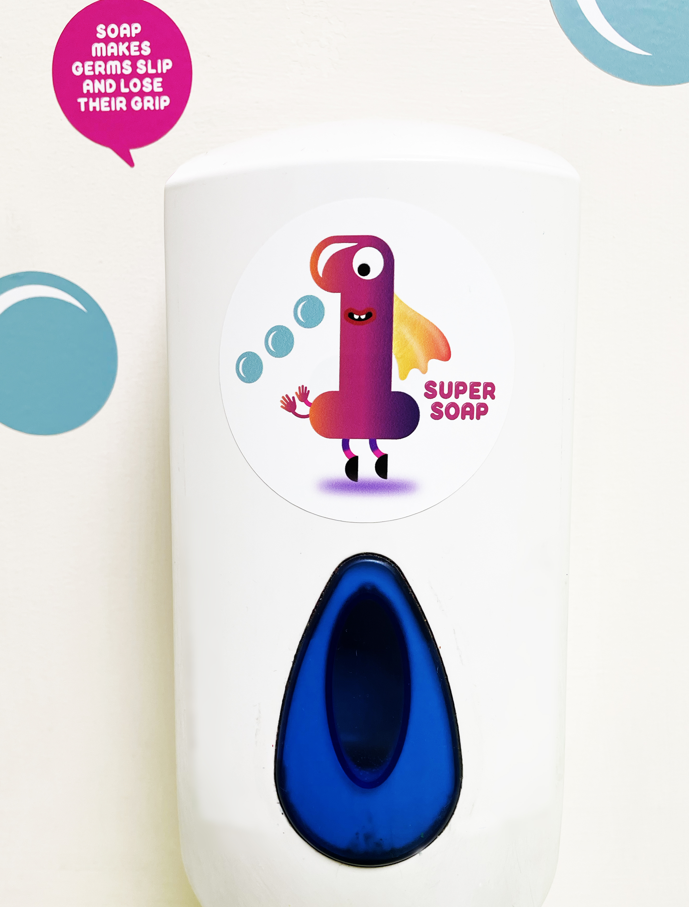 With the help of primary school children we have created persuasive graphics to encourage your children to wash their hands. We have developed a simple 1,2,3 method to encourage them to wash their hands regularly. Our designs also liven up toilet spaces!